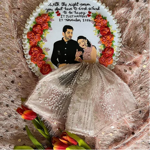 Capture the essence of your beautiful journey together with our Handmade Couple Portrait Hoops. Thoughtfully designed with a stunning hand-painted couple’s portrait, adorned with exquisite embroidered florals on the sides. Each piece is a timeless keepsake made just for you.